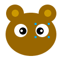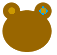 次に耳を同じようにふたつ描き(横・高さ共に35くらい)、[選択]ツール(黒の矢印)で耳らしい位置に並べます。そして、それより小さい円(塗りは黄土色#CC9900)を描いて、耳らしく仕上げます