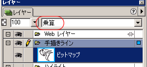 新規レイヤーを作成し(「挿入」>レイヤー)、先ほど取り込んだイラストをそのレイヤーへ入れます。レイヤーパネルで選択&ドラッグすれば移動できます。そのイラストのレイヤーモードを乗算にし、常に一番上にしてください。一番上にしないとラインが見えなくなってしまうので、要注意!