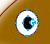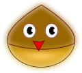 キャラクターということで、栗に目をつけます。楕円ツールを使って描きます。今回の目は3つの丸で描きました。大きい白目と黒目、その中に一番白い丸を重ねるのです。