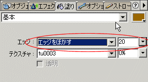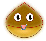 上下2つのパーツができましたが、それぞれ栗らしい色にします。そのとき、各パーツで塗りのエッジをぼかすと、柔らかくてホノボノとしたタッチになります(対象のパーツを選択し、塗りのコントロールパネルにて「エッジをぼかす」、20くらいにします)。