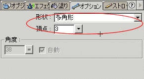 口を多角形ツールで描きます。オプションパネルで「形状:多角形」「頂点:3」に設定してください。